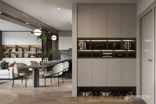 玄關(guān)收納怎么設計更合理?首先就是做好收納!不知道大家有沒有碰到一個奇怪現(xiàn)象:家里的玄關(guān)明明都放了鞋柜在那邊,可是每天依舊是鞋子到處堆放,感覺就像跟出租屋一樣的亂。為什么會出現(xiàn)這樣的情況呢?實際上,之所以會有這種情況,根本原因就是收納不合理導致的。如果入戶有玄關(guān),鞋柜建議有條件的都要做定制為佳。如果入戶沒有玄關(guān),我們就要根據(jù)戶型的實際情況及自家的真實需求,在玄關(guān)的合適位置打收納柜。一方面是為了增加玄關(guān)的收納,另一方面是起到了遮擋作用,保護客廳隱私,不至于在門口就讓人對客廳一覽無余。