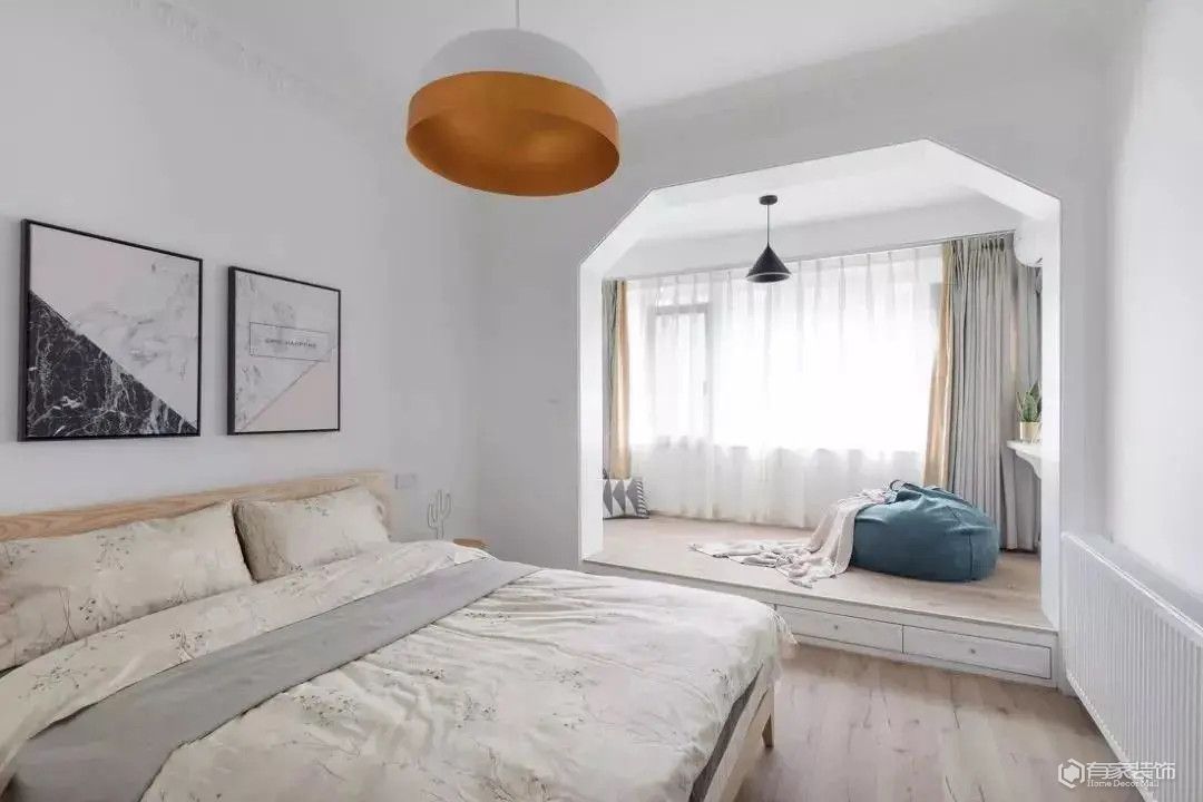 拆除臥室與陽臺之間的門垛!如果臥室與陽臺之間的門垛是非承重墻,那么不妨將門垛拆除,將陽臺空間并入臥室,實質(zhì)上擴大臥室的使用面積。在臥室面積得到擴充后,設(shè)計方面也變得更加得心應(yīng)手。在布局完“老三件組合”組合后,若有盈余的空間,還可以根據(jù)實際情況規(guī)劃自家所缺的功能區(qū),比如說閱讀角、休閑空間等。如果說臥室與陽臺之間的門垛是承重墻,那么就不能任性去拆除了。我們就要想著如何利用好陽臺,改造成生活中所缺的功能區(qū)。