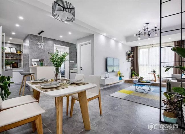 既然拆除的方式行不通,剩下的方法也只有想方設(shè)法弱化或者隱藏橫梁。首先,我們來說說弱化橫梁。想要弱化餐廳橫梁,我們可以試試做個局部吊頂。同時,在橫梁周邊打燈且燈光方向朝著橫梁,可以有弱化橫梁的效果。另外,餐廳層高要是高于2.7米或者更高,還可以打造人工“假”橫梁。在完美地隱藏原有過于凸出的橫梁同時,也是起到了平衡空間的作用。至于隱藏橫梁,也是要層高足夠,直接打造整體吊頂,將橫梁隱藏在吊頂里面。值得一提的是,如果餐廳橫梁處于餐廳與其他空間的交接處,我們還可以用來打造隔斷,完美隱藏橫梁。