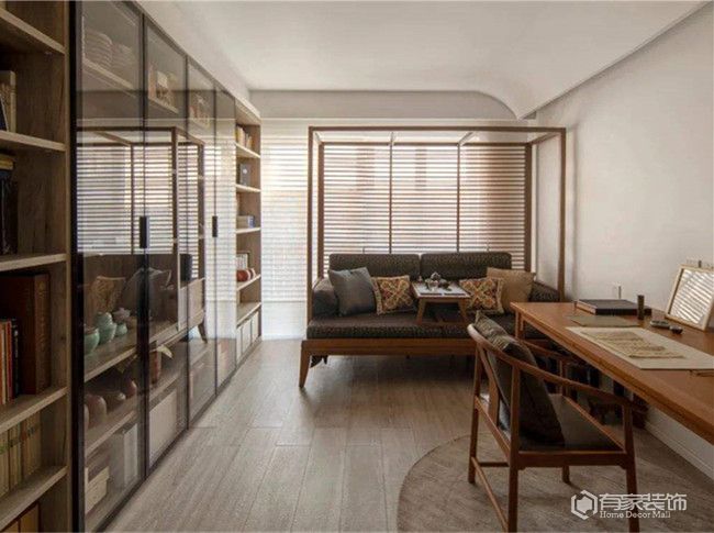 想要做到書房在視覺上顯大,首先要做的一點(diǎn),就是不安裝吊頂。如果覺得天花板太裸露了,建議試試不占層高且高顏值的石膏線吊頂。同時,在書房燈飾上,也建議選擇簡單點(diǎn),比如說偏圓潤的線型吊燈。很多時候,家里之所以會顯小,根源就是出在家具上。因而,書房的家具也盡可能選用矮小型,書柜做嵌入式通頂設(shè)計。這樣子,就可以讓書房的通透性變得更好,自然就會有一種視覺顯大的錯覺。當(dāng)然了,采光也是書房顯大的關(guān)鍵。書房窗戶,建議選擇斷橋鋁門窗,完美解決采光、隔音等問題。還有一點(diǎn),書房的整體配色,建議采用淺色。