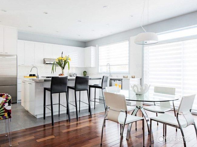 餐廳,是我們和家人進(jìn)餐的地方,也是感受家庭幸福時(shí)刻的重要場(chǎng)所。很多時(shí)候,我們的一日三餐都是在外直接解決,與家人的溝通日漸減少?;蛟S是發(fā)現(xiàn)了這一問(wèn)題,只要條件允許,絕大多數(shù)人都會(huì)選擇回家吃晚飯。無(wú)論多晚,家里都會(huì)等你一起用餐且預(yù)留一雙專屬你的筷子。同時(shí),用餐期間的溝通環(huán)節(jié),也是一家人交流感情的重要時(shí)刻。毫不夸張地說(shuō),看似平淡無(wú)奇的餐廳,實(shí)則也是居家生活中的關(guān)鍵溝通空間之一,僅次于客廳的存在。關(guān)于餐廳裝修,方方面面的細(xì)節(jié)處理是關(guān)鍵,比如說(shuō)餐廳的墻地面/天花板材料、采光、通風(fēng)和其他等。