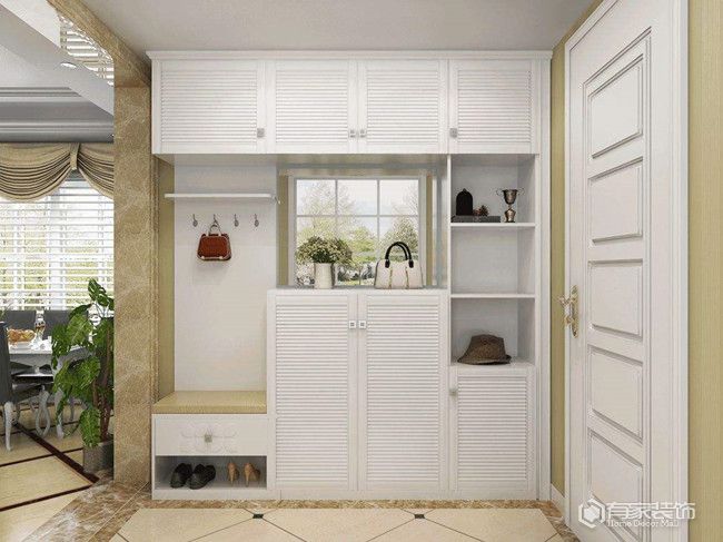玄關(guān)裝修要有哪些先見之明?換鞋凳+透氣孔。玄關(guān)的主要功能,是用于存放一家人的鞋子。所以,玄關(guān)柜內(nèi)部格局要做好。為了充分利用空間且擁有更多的容納量,玄關(guān)柜也要做通頂?shù)亩ㄖ乒?。同時(shí),玄關(guān)柜要預(yù)留或者單獨(dú)規(guī)劃一個(gè)換鞋凳。家有老人、小孩或者孕婦等弱勢(shì)群體,換鞋凳瞬間成為家里的香饃饃,堪稱居家生活的人性化設(shè)計(jì)。另外,為了避免鞋子長(zhǎng)時(shí)間在密閉空間發(fā)酵,玄關(guān)柜第二層空間的柜門,記得留有透氣孔,可以規(guī)避玄關(guān)有異味的情況。玄關(guān)底部,建議做留空10-15厘米,用于放置常穿的鞋子,減少鞋子到處亂放的問題。