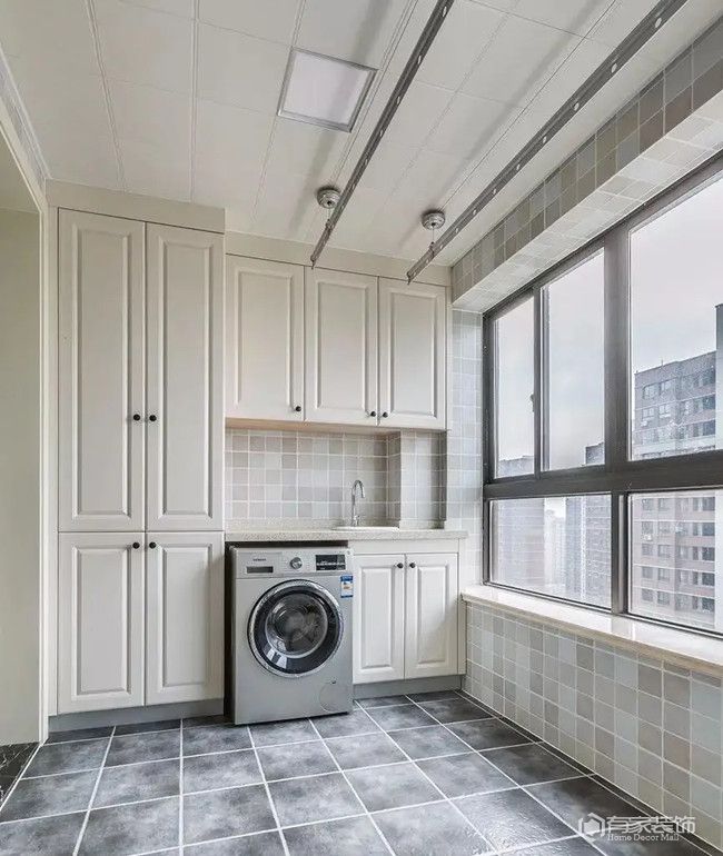 相較于乳膠漆的“低調(diào)”,瓷磚的高級(jí)質(zhì)感卻是與生俱來。墻面鋪貼瓷磚的陽臺(tái)空間,不僅僅解決了墻面易受潮起皮等隱患,更是大幅度提升了高級(jí)感。一款造型、配色等都完美的墻磚,再在陽光這個(gè)超強(qiáng)“輔助”的綜合作用下,瞬間讓陽臺(tái)空間高級(jí)感滿滿。關(guān)于陽臺(tái)的高級(jí)感打造,陽臺(tái)收納也是關(guān)鍵。畢竟,凌亂不堪的空間,高級(jí)感基本上為零。因而,陽臺(tái)收納建議采用定制設(shè)計(jì)。有條件的,更要做嵌入式,比如說嵌入式陽臺(tái)吊柜、嵌入式洗衣柜等,使得陽臺(tái)的整體空間感變得更好。陽臺(tái)的收納變好了,空間也干凈了,高級(jí)感自然也就來了。
