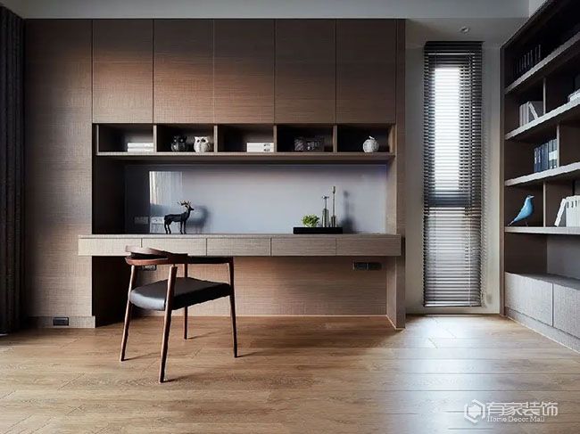 在裝修界,一直以來有句老話:“銀子不夠,設計來湊”。簡單來說,裝修效果的實現(xiàn),可不僅僅只有花錢這個選項。很多時候,設計也能解決問題,甚至整體花費還更少。因而,別再說裝修是無底洞了。在家庭裝修過程中,也有省錢裝修這個選項。書房,省錢裝修怎么做?不必要造型能省則省。眾所周知,書房是家里的多重中心——學習+閱讀+工作...所以,書房裝修的重點是滿足上述功能的實現(xiàn),比如說我們要做好+做足收納。像是中看不中用的復雜墻面造型、復雜吊頂和復雜背景墻等,建議少做或不做,簡直就是花錢做無用功,太浪費了。