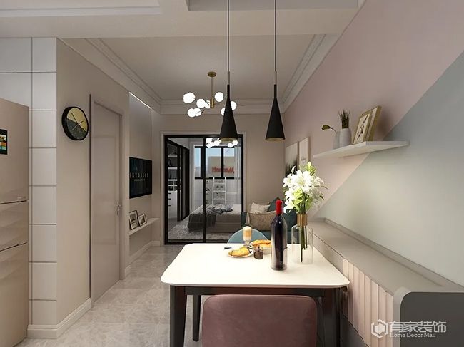 簡(jiǎn)單來說,不再具體劃分客廳和餐廳。客廳與餐廳一體式設(shè)計(jì),也讓整個(gè)空間更加寬敞大方。對(duì)于小戶型餐廳的設(shè)計(jì)問題,小餐桌也是一個(gè)不錯(cuò)選擇。小餐廳配小餐桌,空間設(shè)計(jì)更合理。很多時(shí)候,餐廳空間之所以顯擁擠,就是餐桌買大了。值得一提的是,餐廳空間不是很大時(shí),建議取消餐邊柜,用來優(yōu)化用餐空間與動(dòng)線。畢竟,即便是定制餐邊柜,也會(huì)占據(jù)一定空間。除了以上幾種方案之外,餐桌靠墻擺放也是折中選擇。較之傳統(tǒng)居中擺放,無疑是節(jié)省空間。怕朋友來了不夠坐?試試將過道空間納入餐廳。人多了,把餐桌挪出來,臨時(shí)占用部分過道。