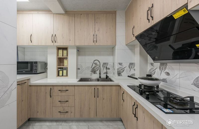 油煙機(jī)要不要包起來(lái)?將油煙機(jī)包起來(lái),可以避免管道裸露在外面,提升廚房的美觀度。如果吊柜內(nèi)部,空間除去油煙管道占據(jù)的空間還有剩余,那么這部分空間建議利用起來(lái),收納廚房部分使用頻率低的物品,緩解收納壓力。用吊柜包裹的油煙機(jī),避免了頂部落灰和堆積油煙的問(wèn)題,從而減少廈門室內(nèi)設(shè)計(jì)清潔的難度。包裹油煙機(jī)的材料要選好,以免因?yàn)闇囟茸兓斐捎绊憽?/span>