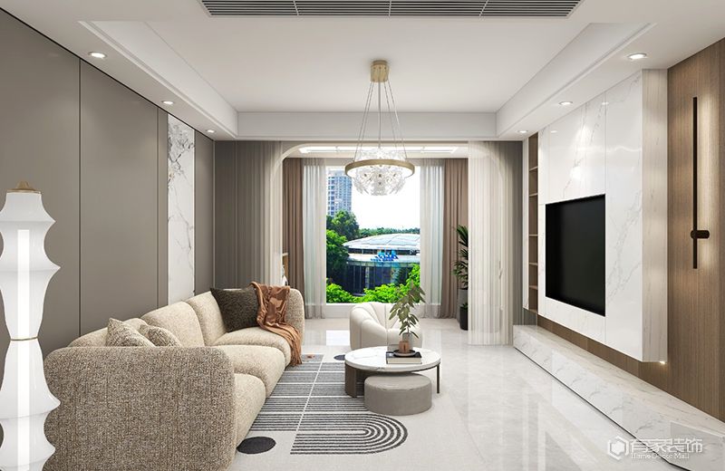 平時(shí)幕布收起,電視墻可作為其他裝飾或收納空間。選擇投影幕布時(shí),廈門別墅家裝要考慮其尺寸和畫質(zhì),以及與家庭娛樂設(shè)備的兼容性。值得一提的是,投影的裝修設(shè)計(jì),要提前預(yù)留好幕布的安裝位置和電源插座?;蛘哒f不對電視墻進(jìn)行過多裝飾,保持簡潔大方的留白處理。留白處理要注意與整體裝修風(fēng)格的協(xié)調(diào)性,避免過于單調(diào)或突兀,通過燈光、色彩等元素進(jìn)行點(diǎn)綴和補(bǔ)充。